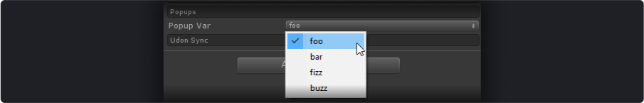 Combining it with a [Popup] attribute is the way this is used the most across Udon Toolkit's behaviours. Creating list of Udon events and Animator triggers becomes a matter of a single line of code that handles everything behind the scenes.