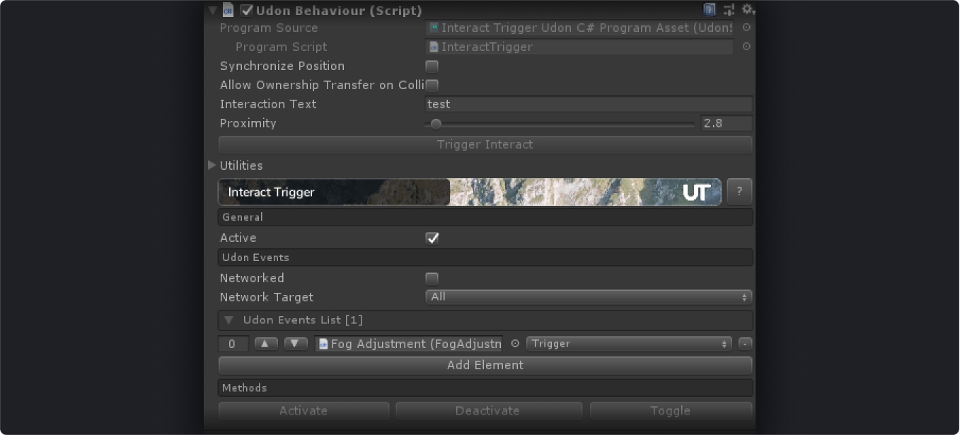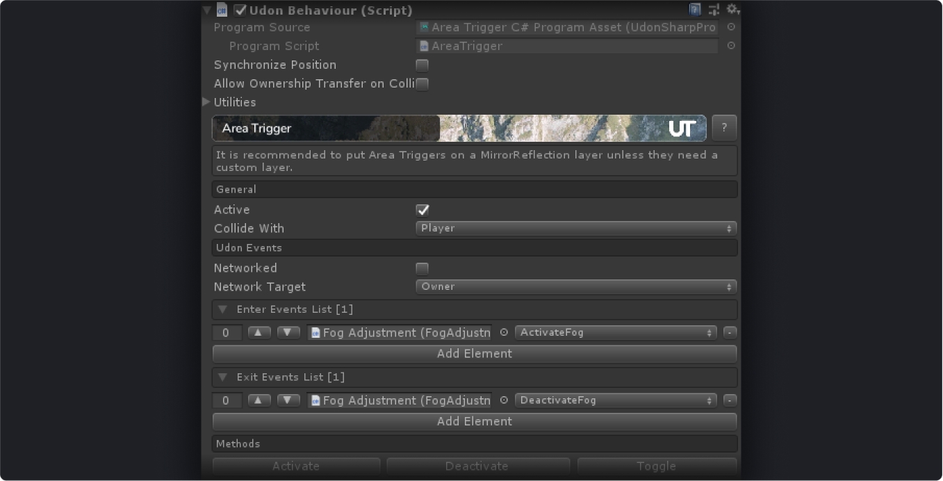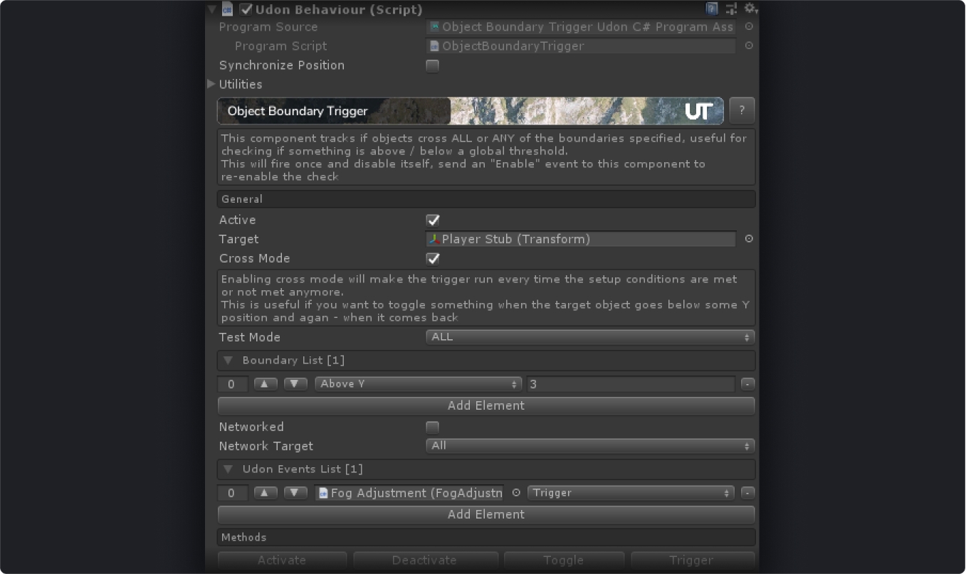 Note that this process can be performance heavy, so you don't want many of these behaviours running at all times, use the Toggle