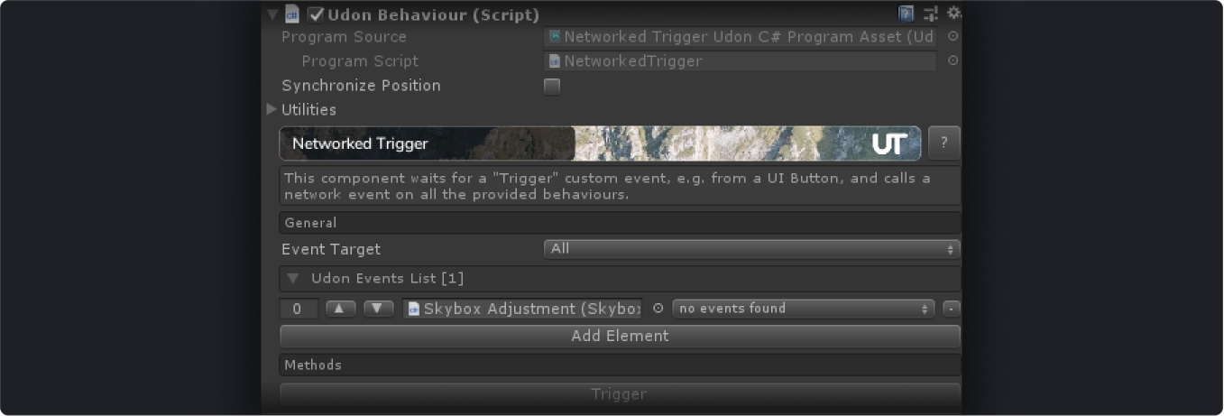 Enter Events List: A list of Udon Behaviours and Events to send when the correct object enters the trigger collider