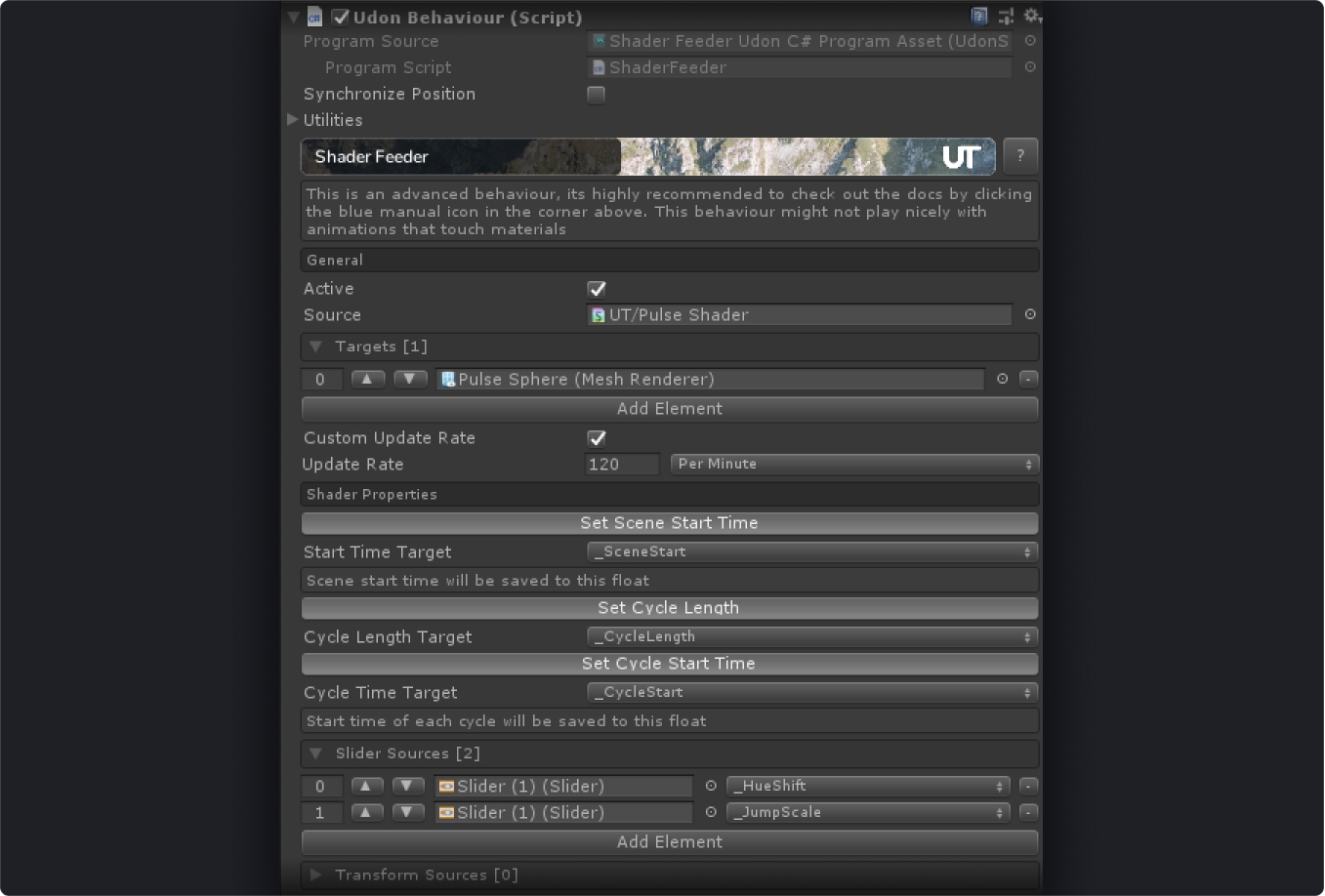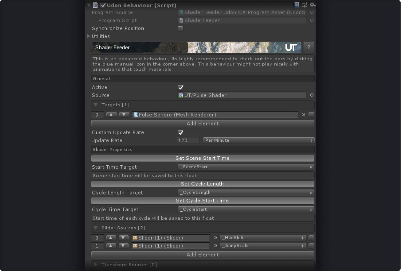 Transform Sources: List of Transforms and corresponding property names to pass the Transform positions to