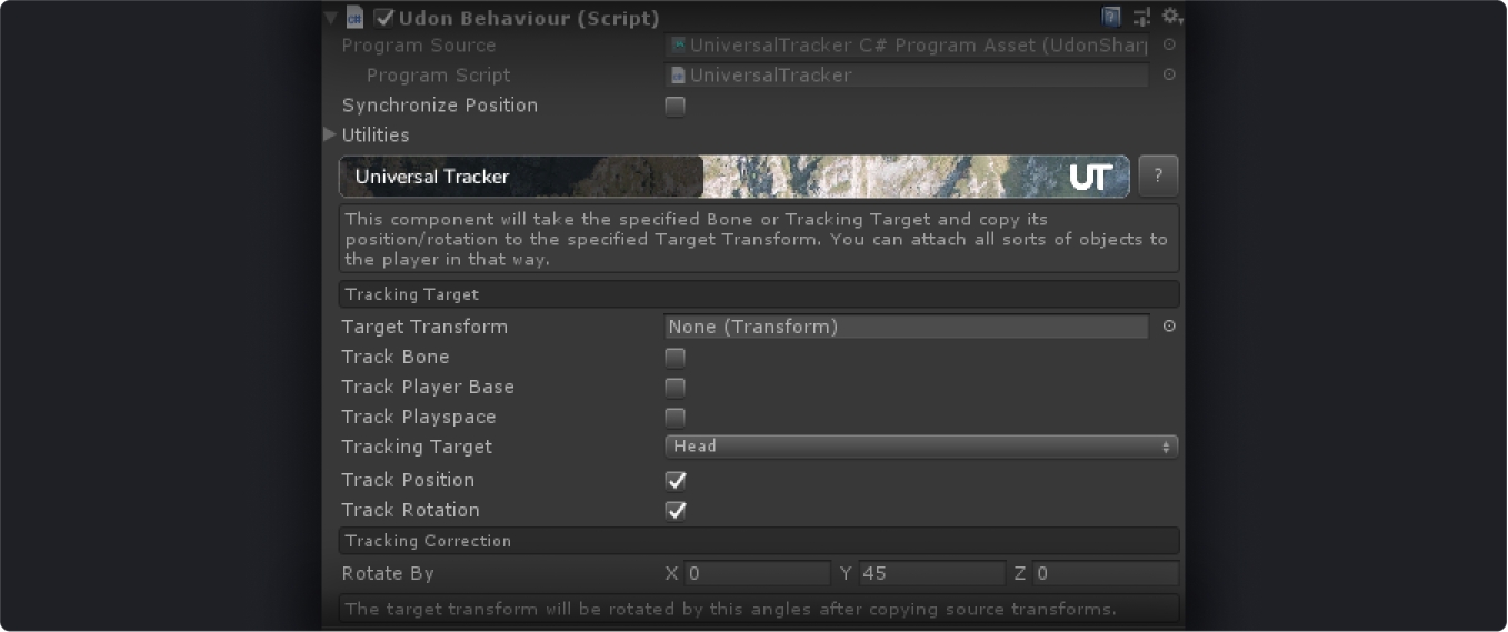 Tracking Correction: Allows to apply an extra X/Y/Z rotation to the transform after copying it over